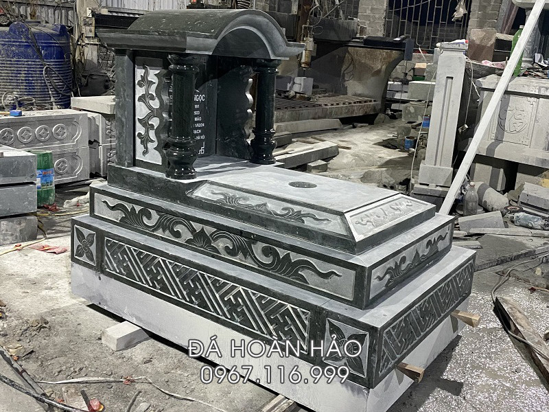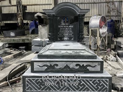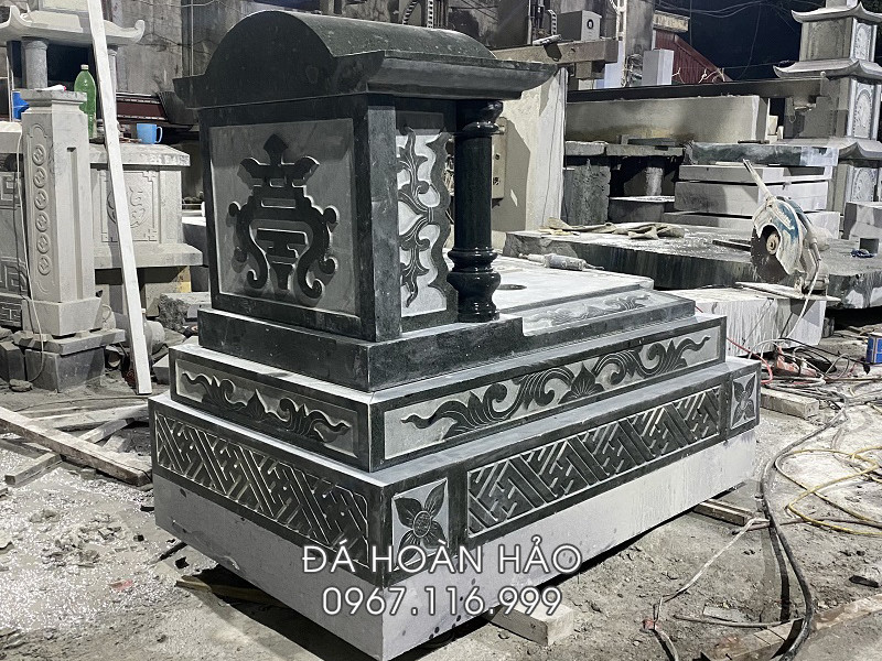 • Chất liệu đá xây mộ: đá xanh đen Thanh Hóa chạm khắc tỉ mỉ, tạo bo, viền ấn tượng;
