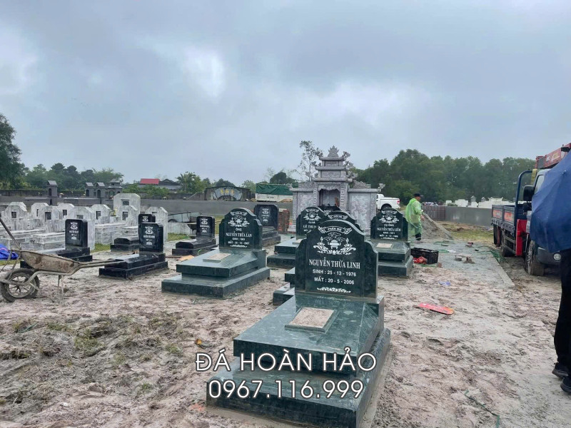 Lắp đặt Mộ đá xanh rêu cho gia đình tại Quảng Bình
